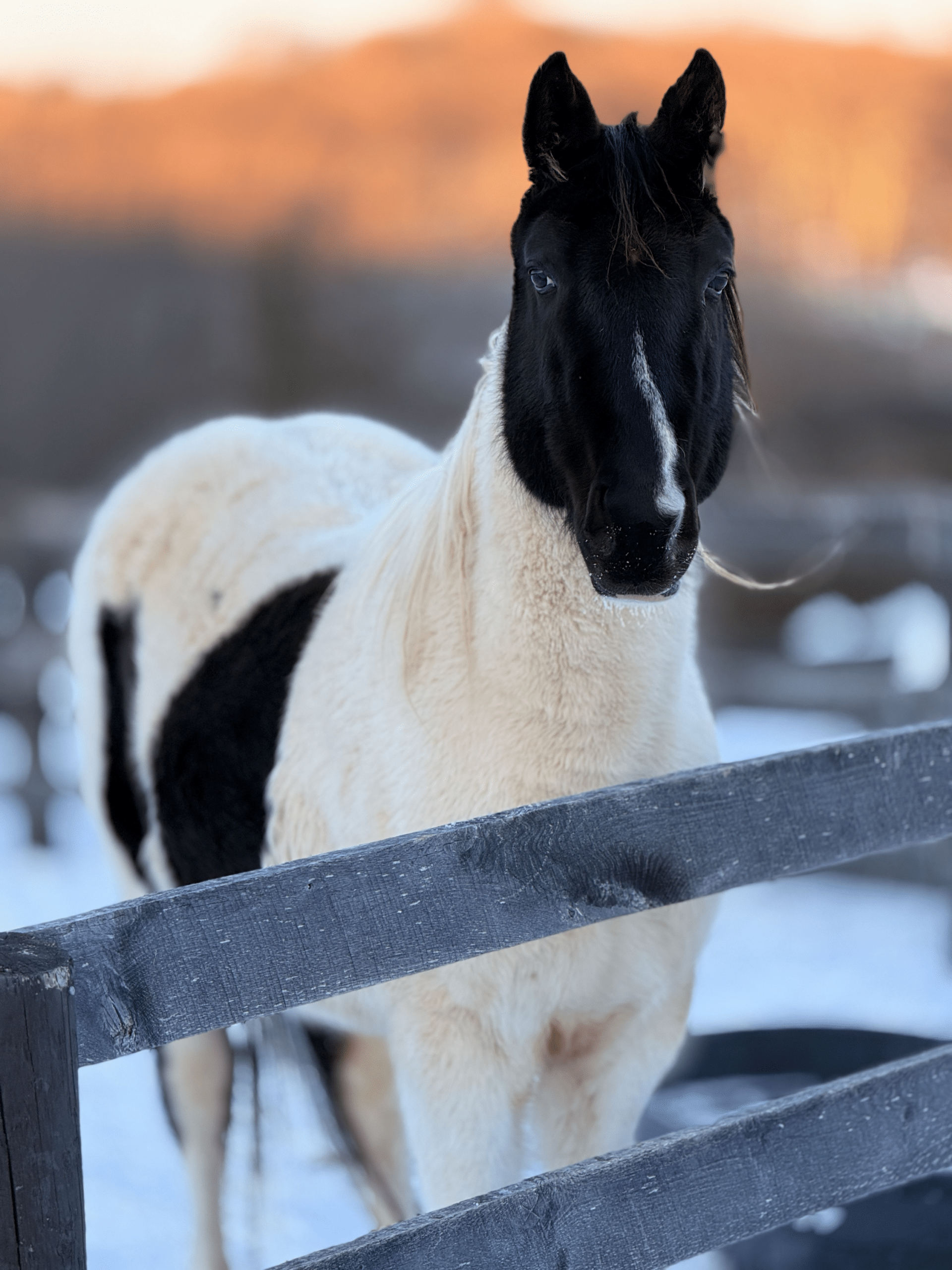 With time, Bandit has begun to show us who he really is. He’s still a bit head shy and cautious, but he’s also becoming genuinely curious. These days, he’ll often be the first to wander over to the fence, stretching his nose out to say hello and check you out on his own terms.