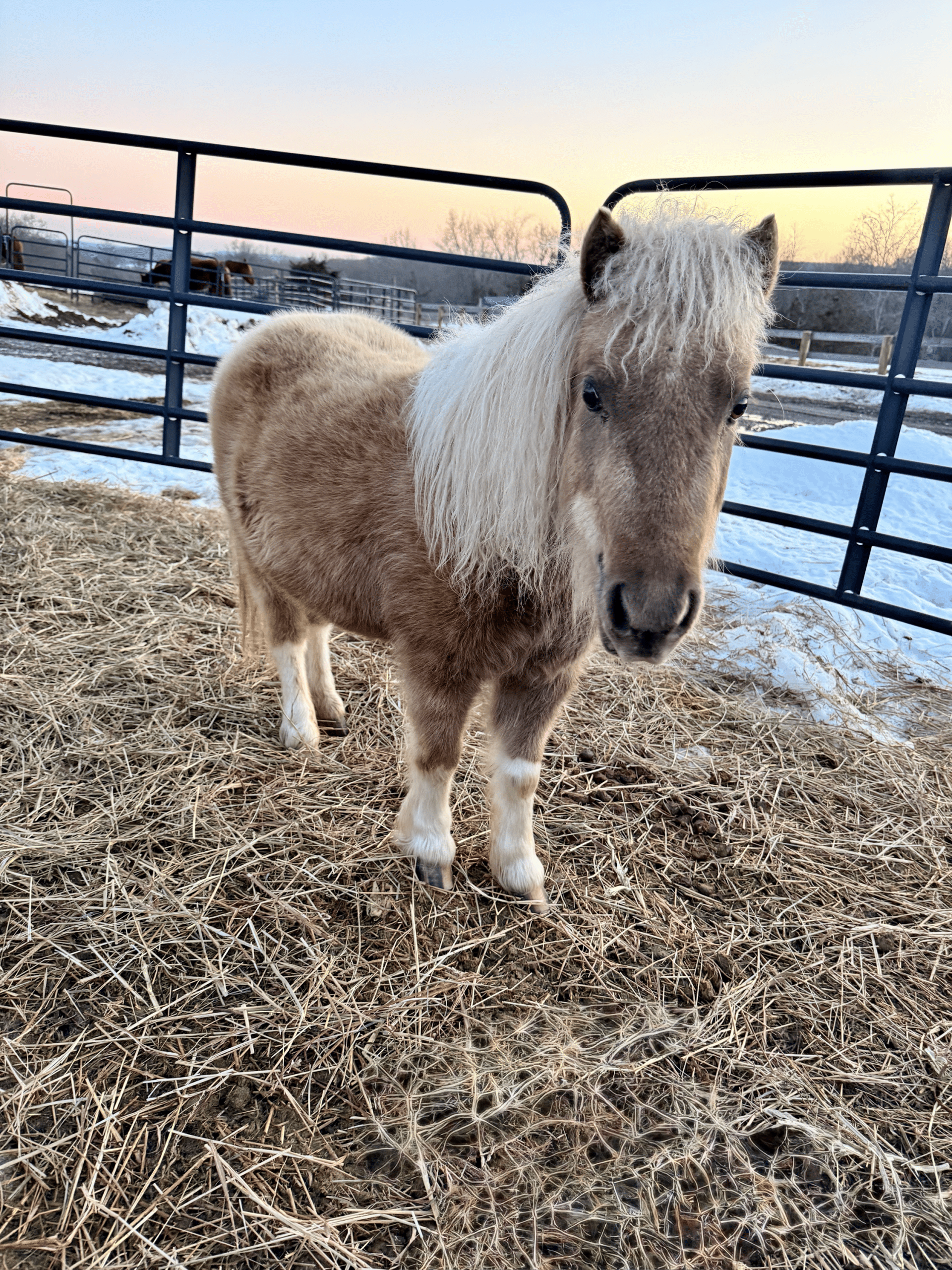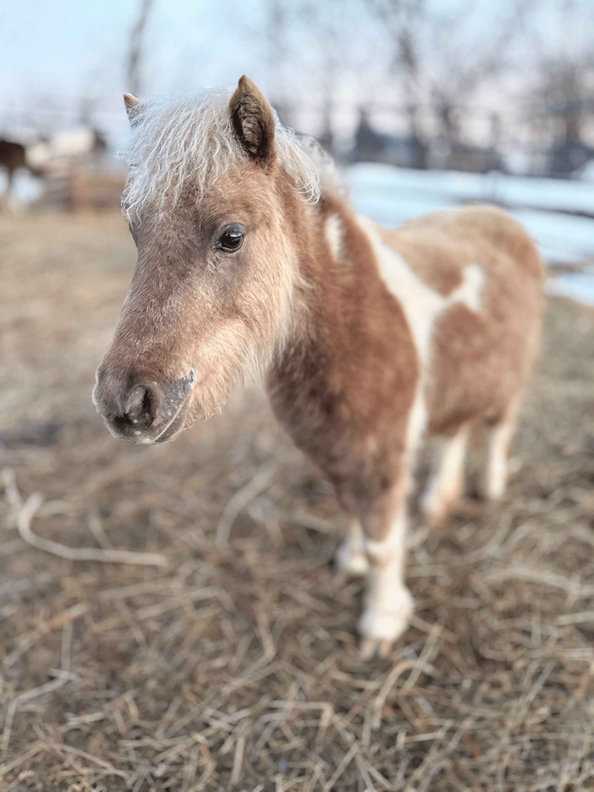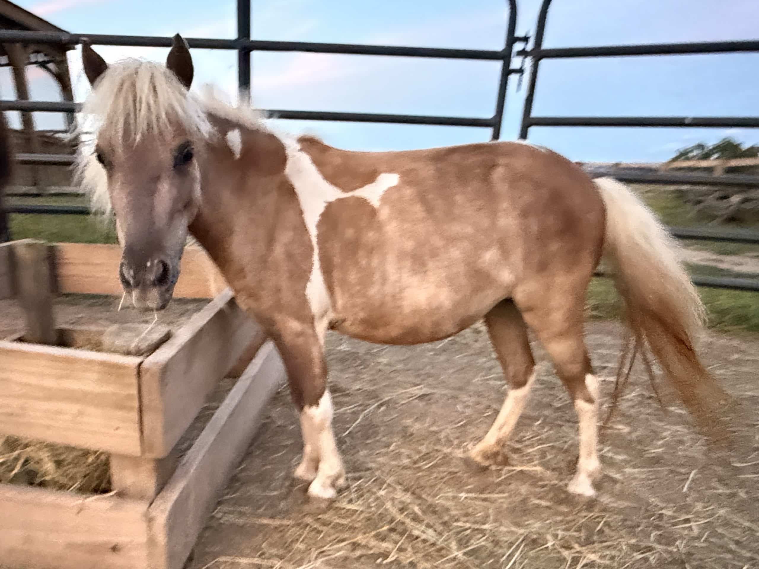 Desert Rose is a 2022 miniature horse with a tough, defensive personality, though she has started to soften as she gets older. She can be mouthy and unpredictable, and she’s still learning how to interact appropriately with people. Even so, she is very curious, and someone experienced with horses who show defensiveness would be able to help her make steady progress. She simply hasn’t had the chance to develop strong social skills with humans, but she has potential with the right approach.