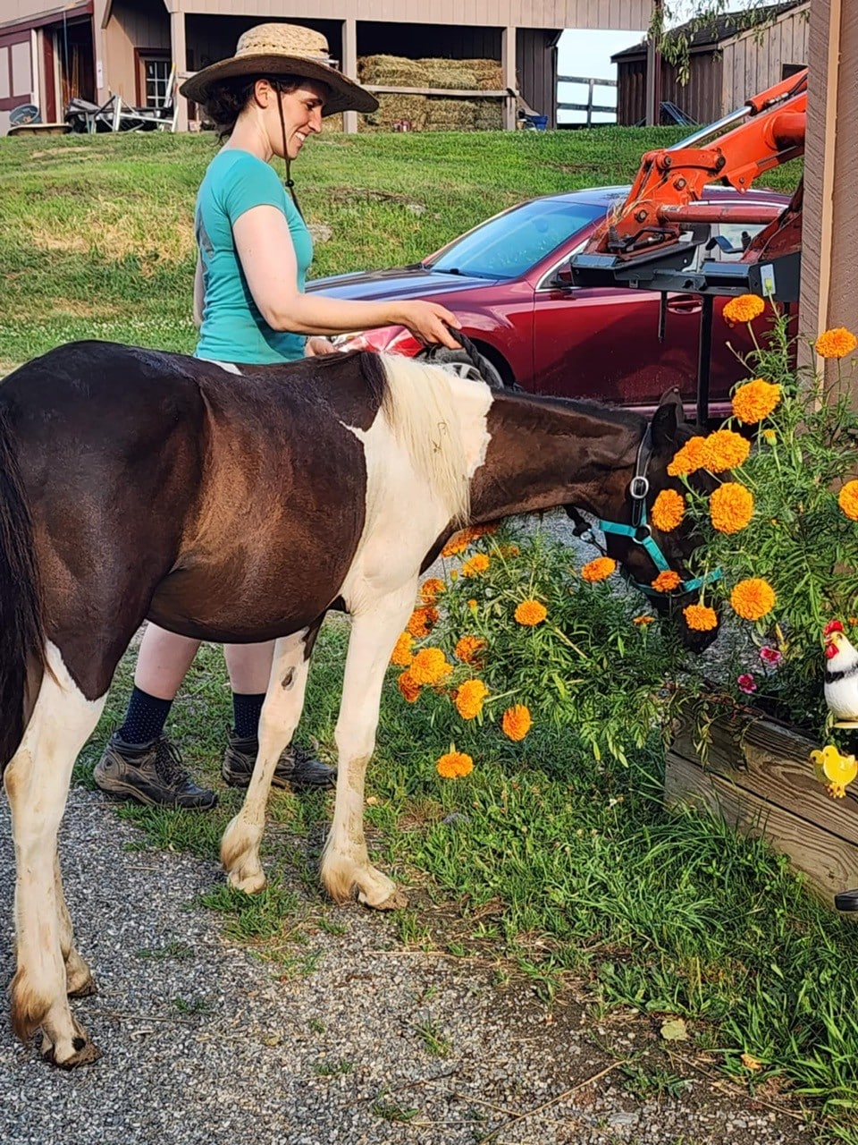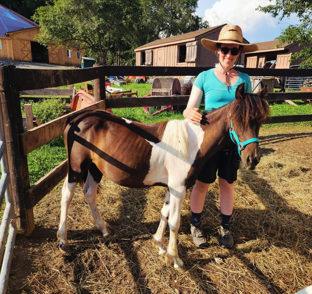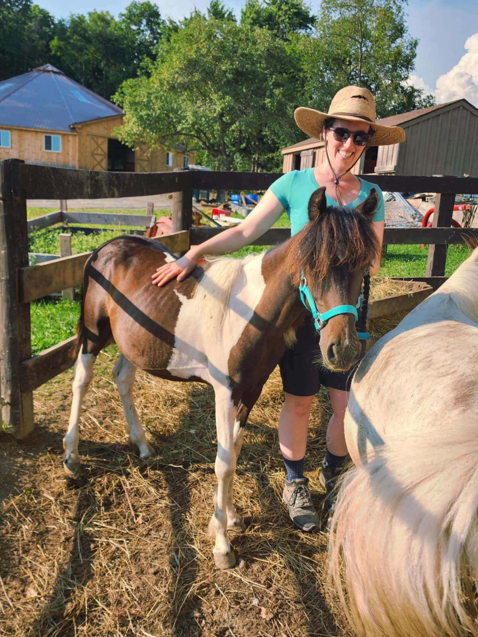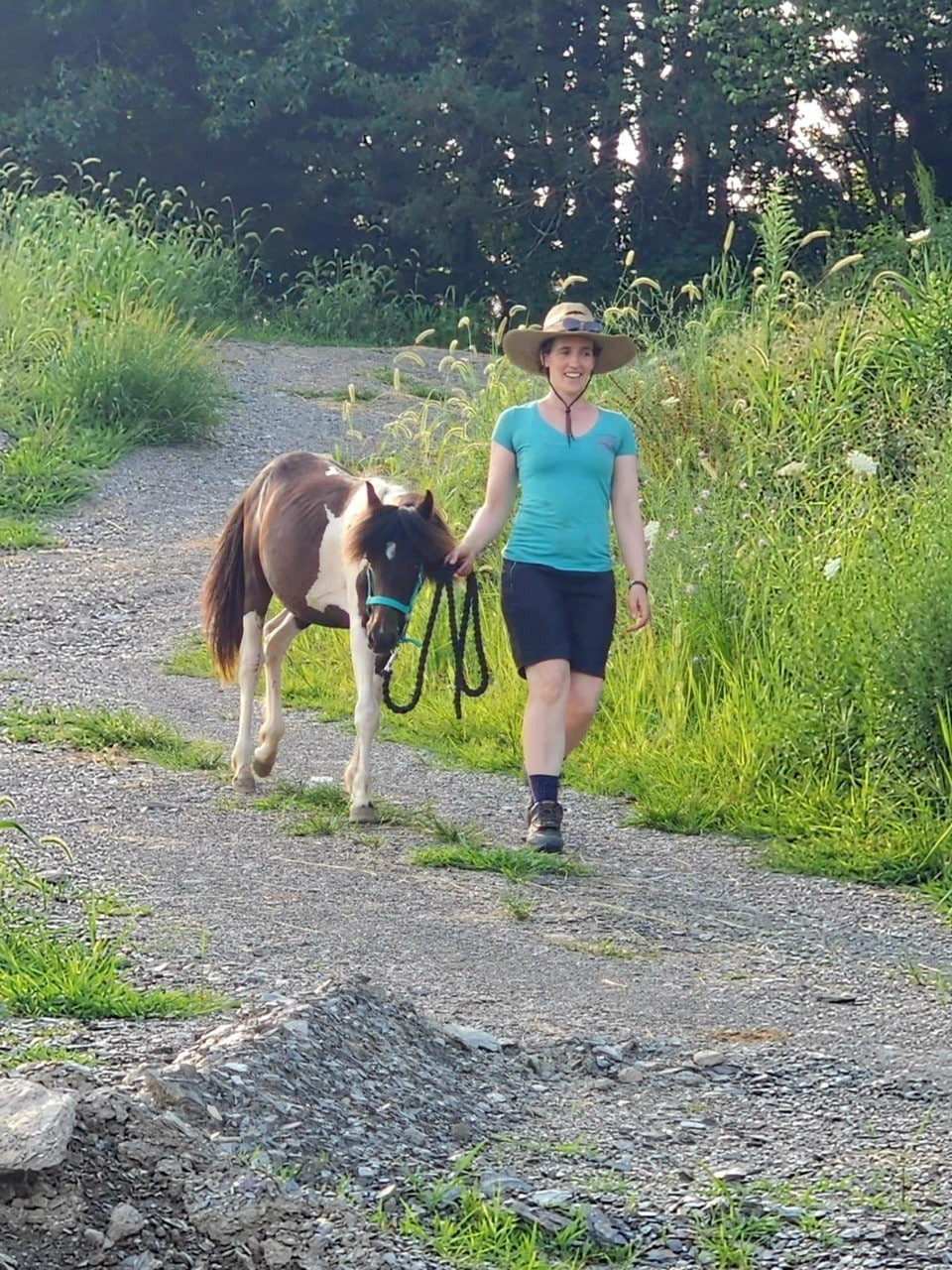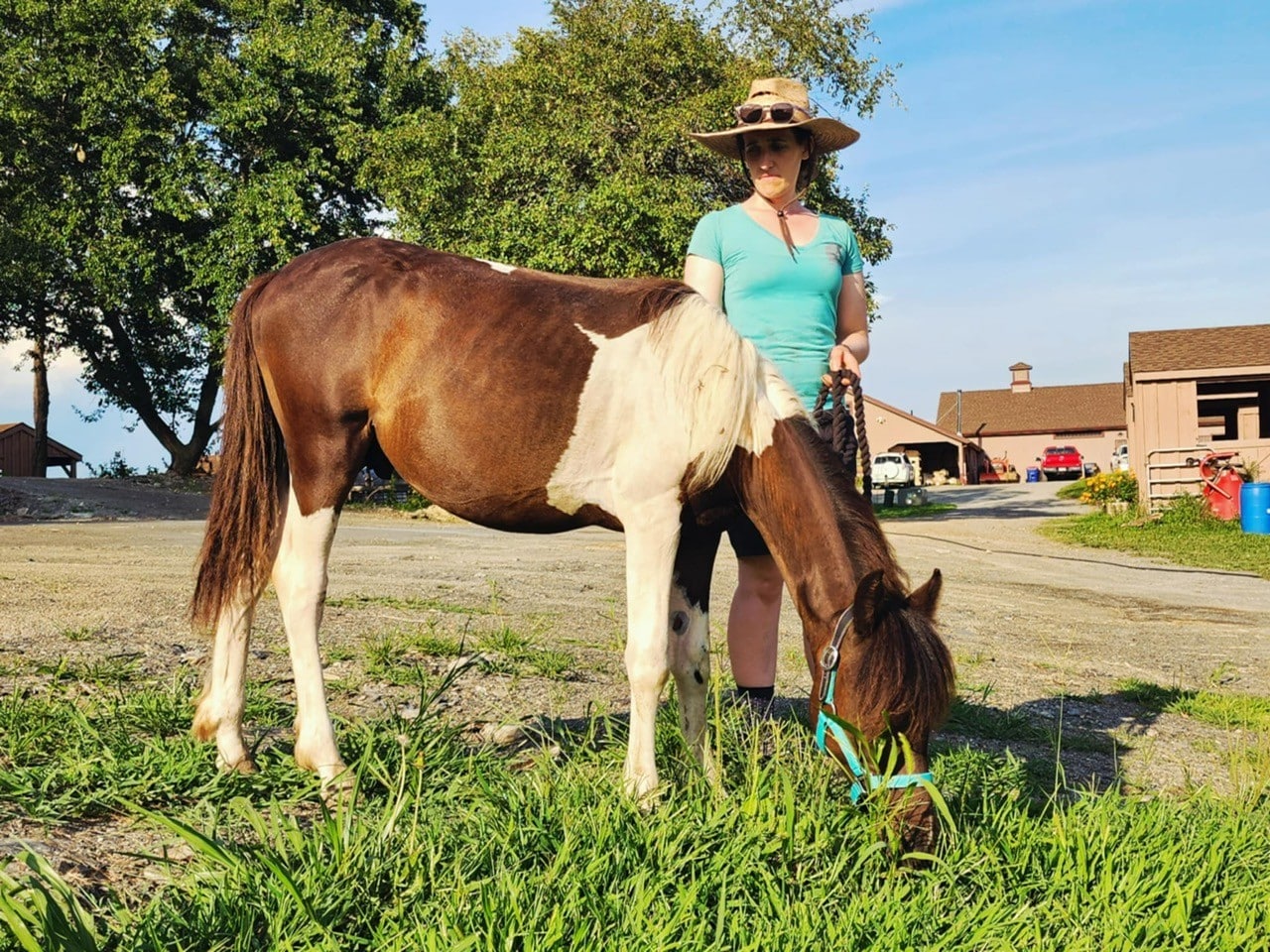 He cross‑ties politely and stands for trimming without sedation. Because he’s still learning to balance during hoof care, we’re giving him patient practice to help him grow stronger and more coordinated. At roughly two years old, Vinnie is still very much developing physically, so riding is at least a few years in the future. He also won’t mature into a size suitable for adult riders, but he has all the makings of a wonderful companion or future kid’s pony with continued training.