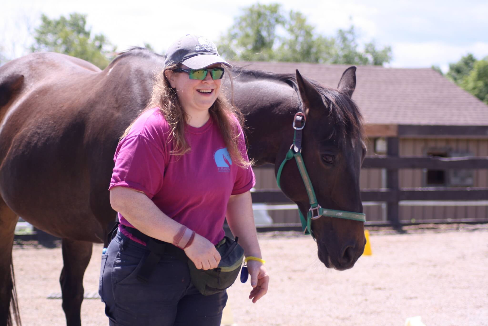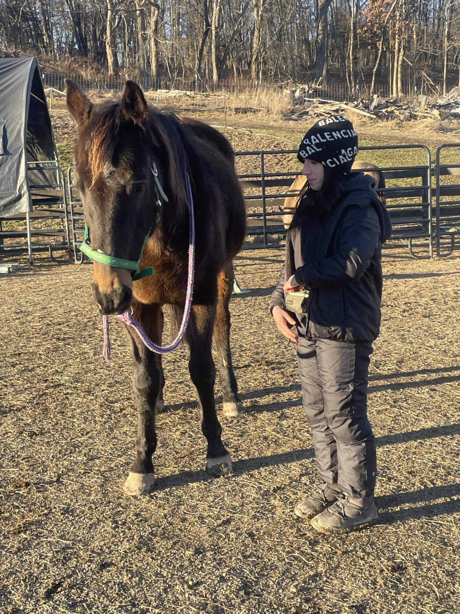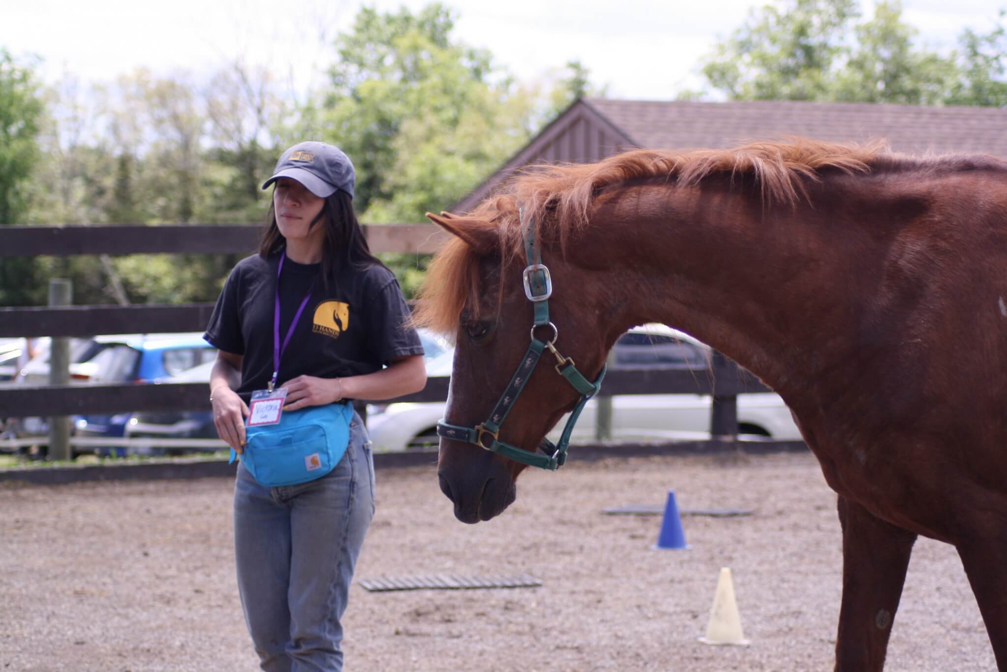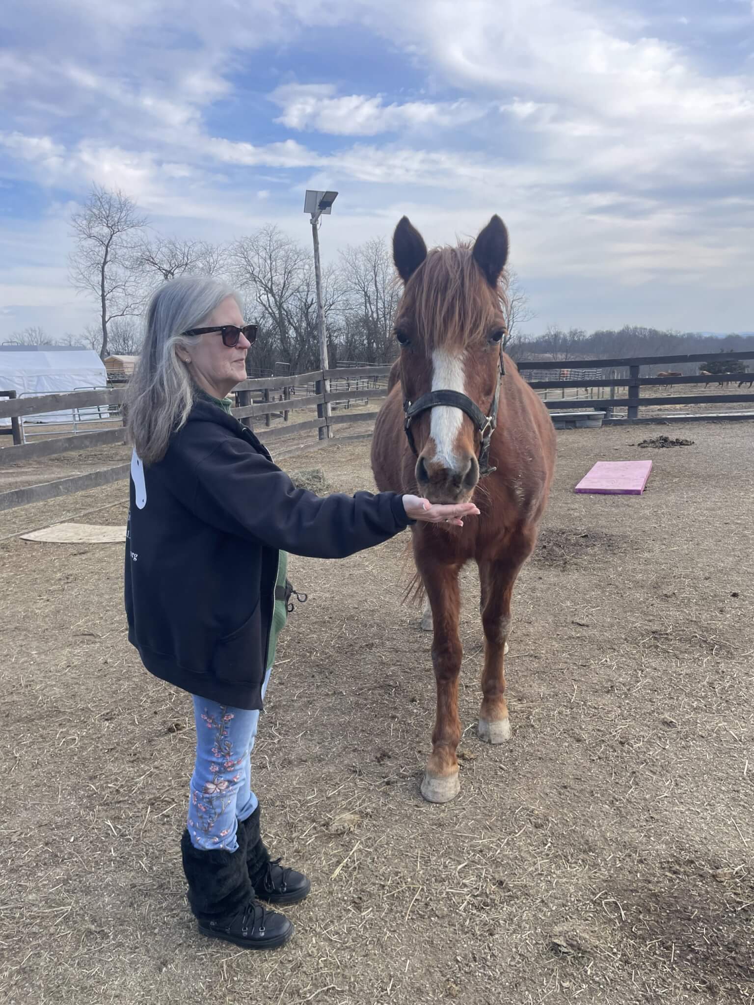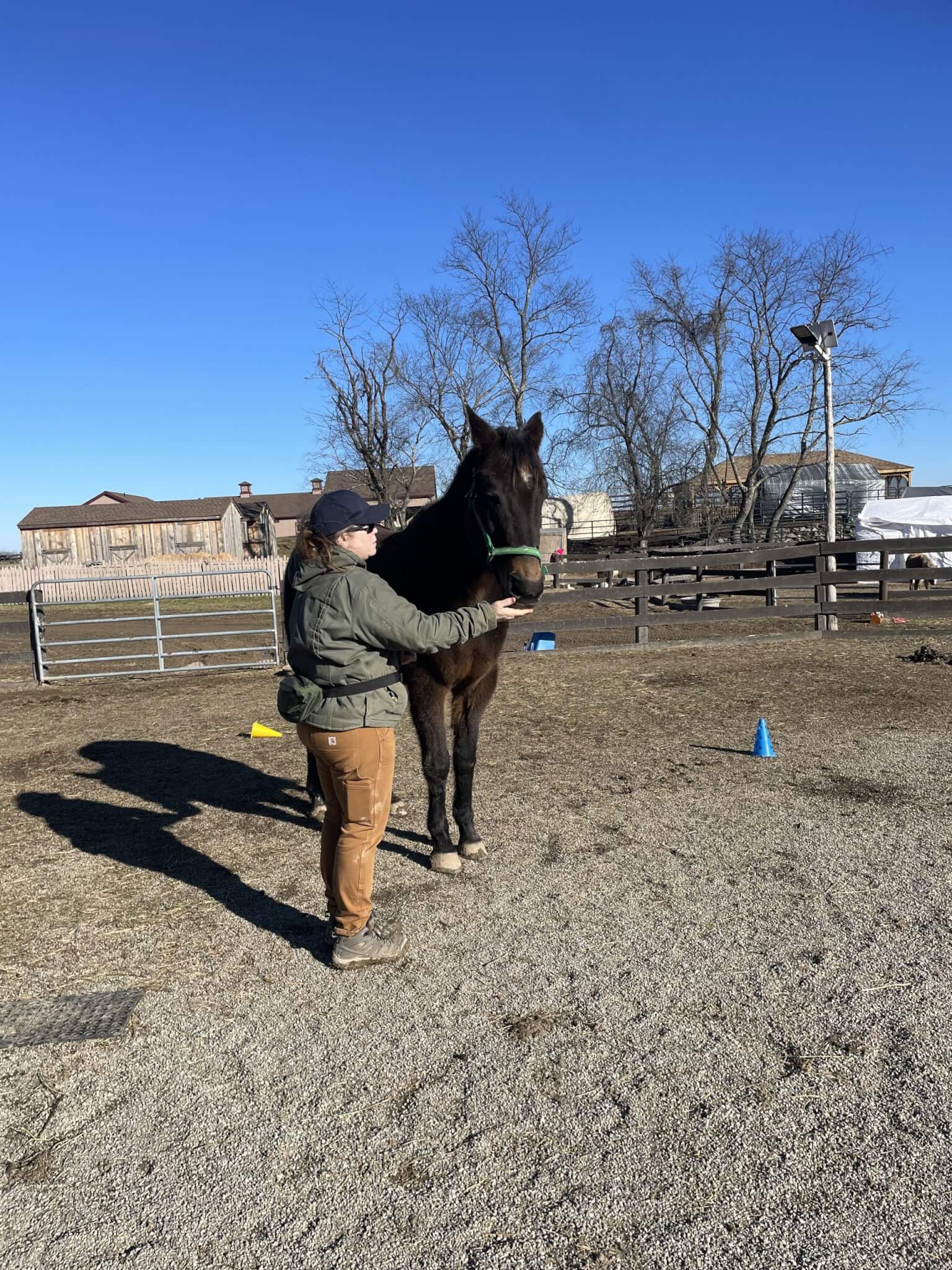 Just like people, older and unsound horses can benefit greatly from gentle physical exercises that strengthen their core and improve their balance and coordination. Under the guidance of our trainer, Taylor Culbert, our volunteers in this program use clicker training, a positive reinforcement-based method, to partner with our horses and engage in activities and movements that will help the horses feel as comfortable as they can in the bodies they have. We call this program Soft Landings because in addition to having found a soft landing when they ended up at 13 Hands, the horses begin to land more softly with their feet as they learn to move in better balance, which reduces strain on their joints and other parts of their body.