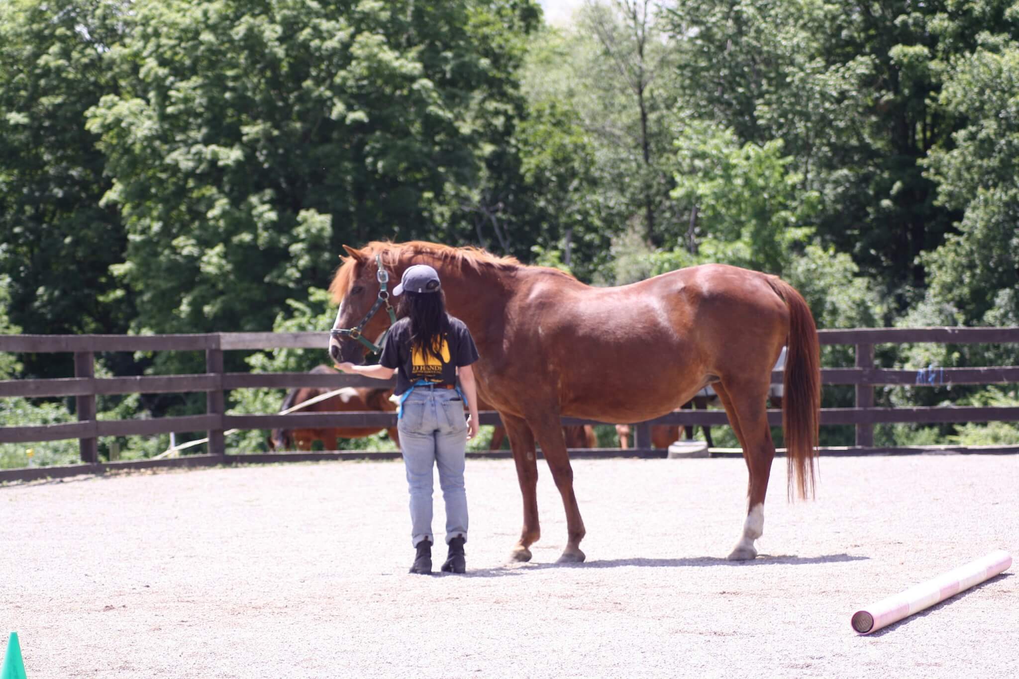 Horses evolved to be problem solvers, and another part of this program is to provide mental enrichment for the horses by giving them opportunities to explore new environments, encounter new objects in ways that feel safe, learn to solve puzzles, and play any kind of game that our human and equine participants can come up with together!